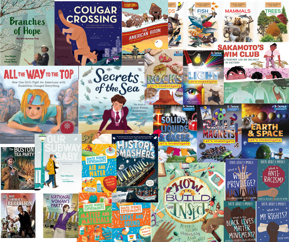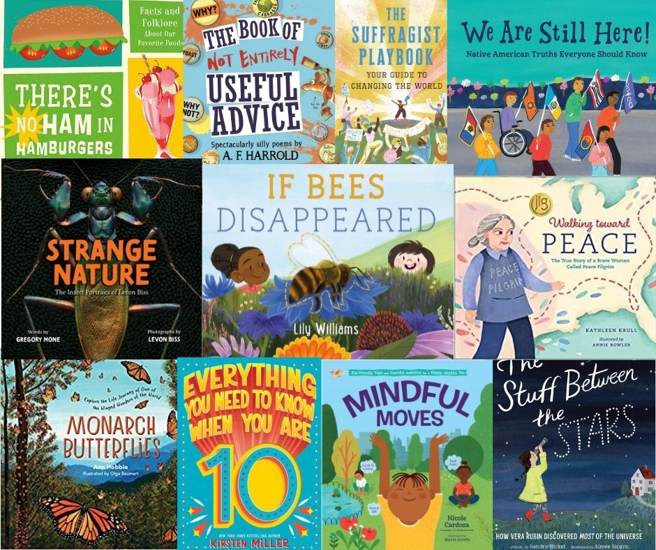 Are you invited to be the mystery reader in your child or grandchild’s classroom? We can help you with your selection, with a growing collection of picture books and nonfiction books for your perusal. Just come downstairs and ask the Children’s staff about the read-aloud cart. Here is a small selection of the 99 (plus) books on our purple cart: