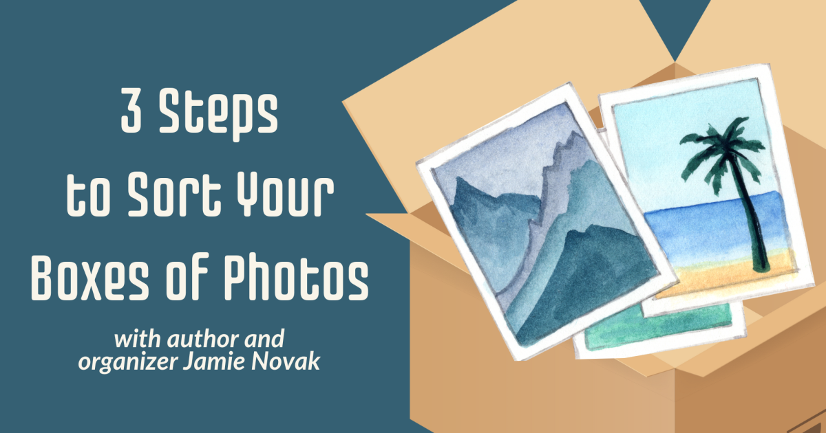 Register and join author and organizer Jamie Novak on Zoom as she reveals the three steps you can take today to make sense of your boxes full of photos. She'll guide you through a live mini decluttering session, so that by the end of the program you're prepared and inspired to successfully tackle your own photo sorting project.