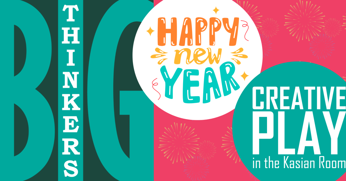 Expand your minds and stretch your imaginations during Big Thinkers! The Kasian Room is transformed into a self-directed, family-friendly creative play space and discovery center. Puppets, puzzles, books, musical instruments, and some special New Year's Eve crafts will be on hand to pique your curiosity and spark new ideas. Drop in to play and THINK BIG! Best for ages 0-5.