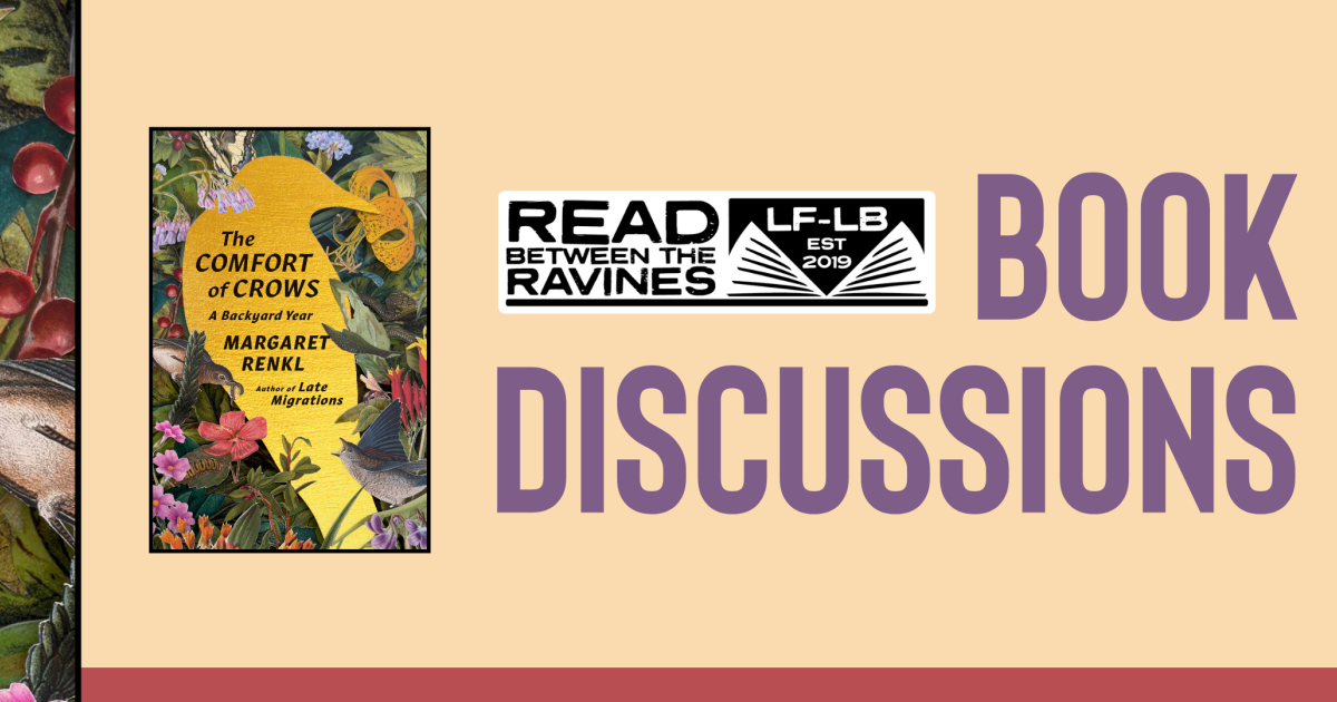 Register with Lake Bluff Public Library (call 847-234-2540 or go to the LBPL web calendar) and join us in person off-site at the Elawa Farm Hay Barn (1401 Middlefork Drive) for a discussion of this year's Read Between the Ravines title, The Comfort of Crows: A Backyard Year by Margaret Renkl.
