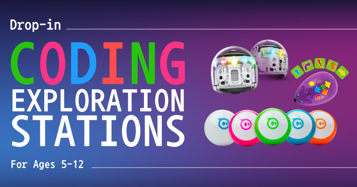 Drop in and explore a variety of coding games and technology, including Sphero Minis, Ozobots, Code & Go Robot Mouse, and more!