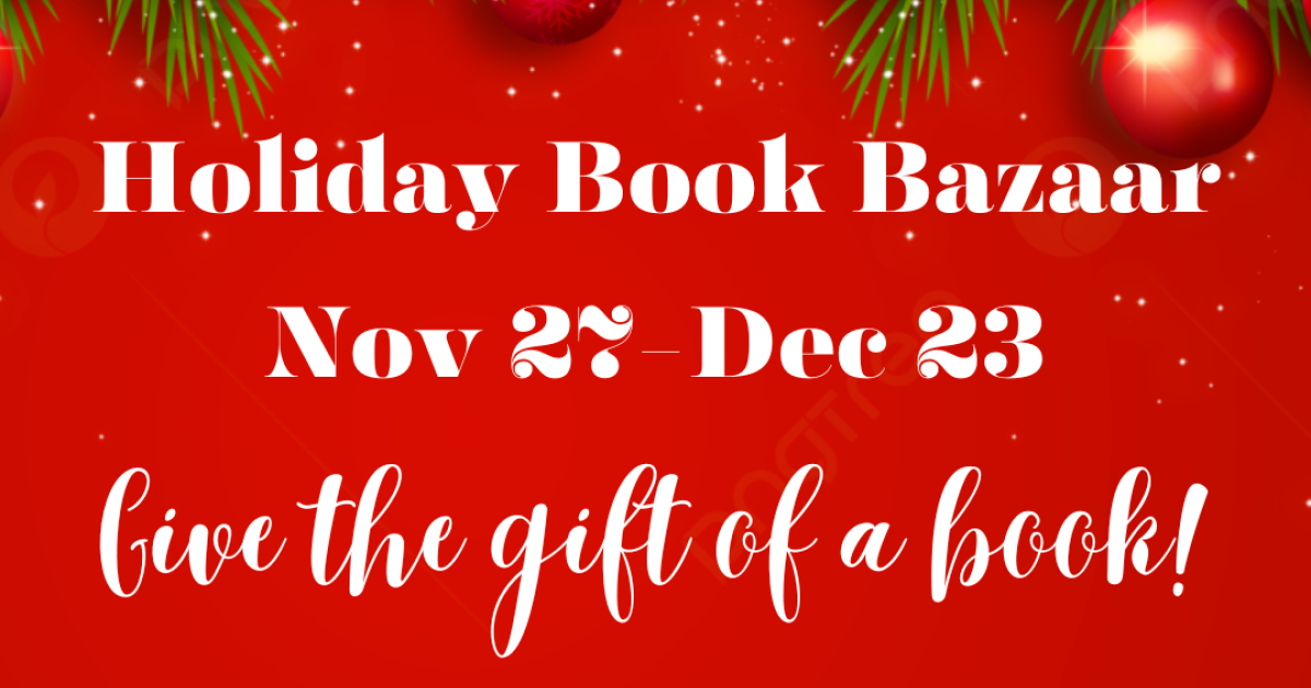 Browse an assortment of holiday books selected to get you in the spirit of the season and to give as gifts. Prices are marked at the top of the first white page of each book. Payment is cash on the honor system in the collection box for purchases and donations. Thank you for your support of the Friends!