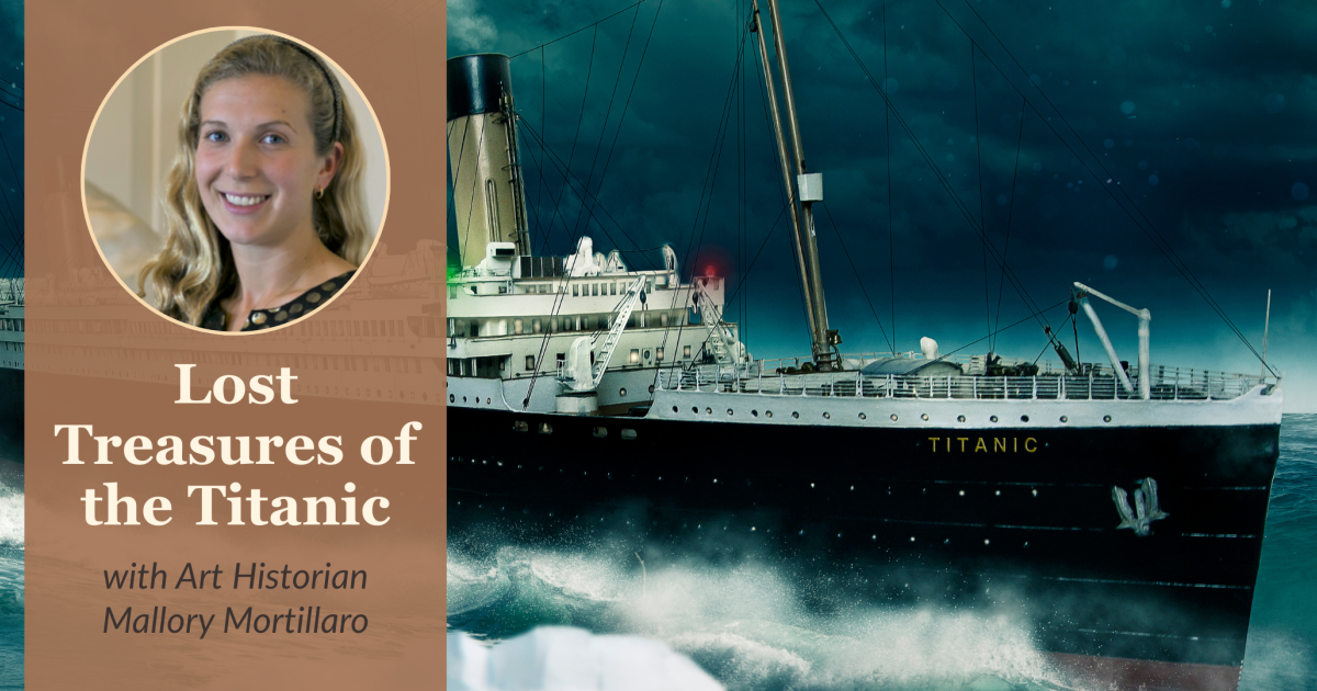 Register and join art historian Mallory Mortillaro on Zoom to travel back to April 14, 1912, when tragedy struck the RMS Titanic. James Cameron's Titanic told the invented story of the Heart of the Ocean, a fictional blue diamond necklace lost tragically in the ship’s famous sinking. Learn the true story of how, in addition to the incredible loss of life, a nearly incalculable amount of treasures plummeted into the ocean, never to be seen again.