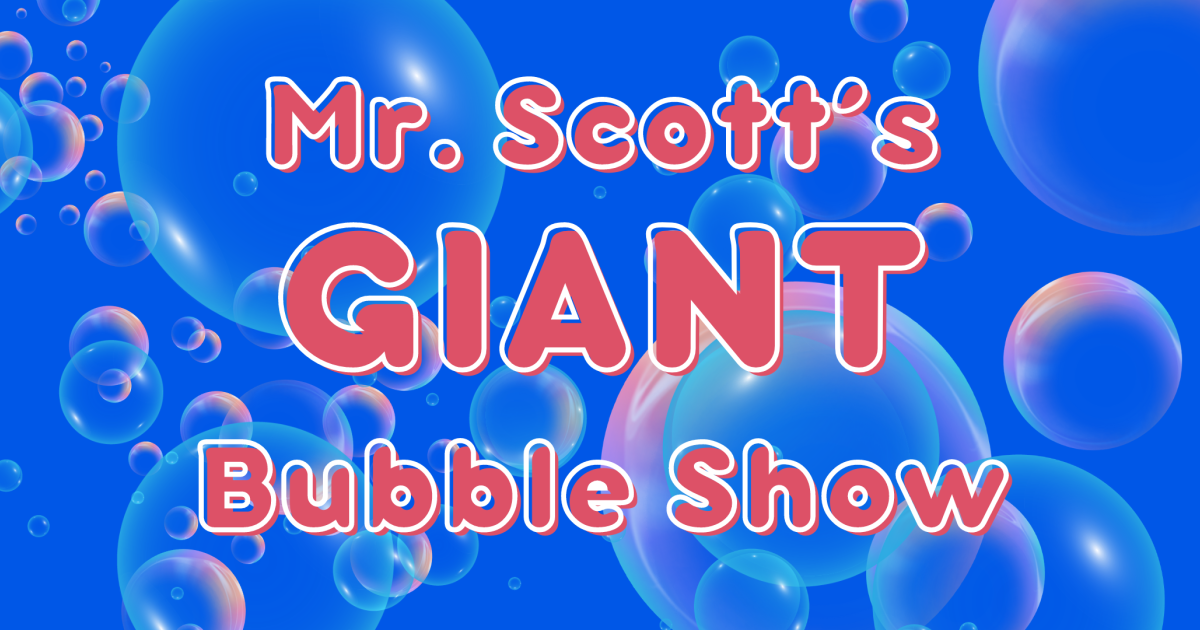 Register and join Mr. Scott in person for bubbles that just keep getting bigger and better.