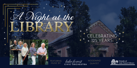 Purchase a ticket and join us in the historic and beautiful Lake Forest Library for hors d'oeuvres and wine with music by the Lake Forest Civic Orchestra woodwind quintet. This after-hours soirée in celebration of the Library's 125th anniversary is not to be missed! Tickets are limited.