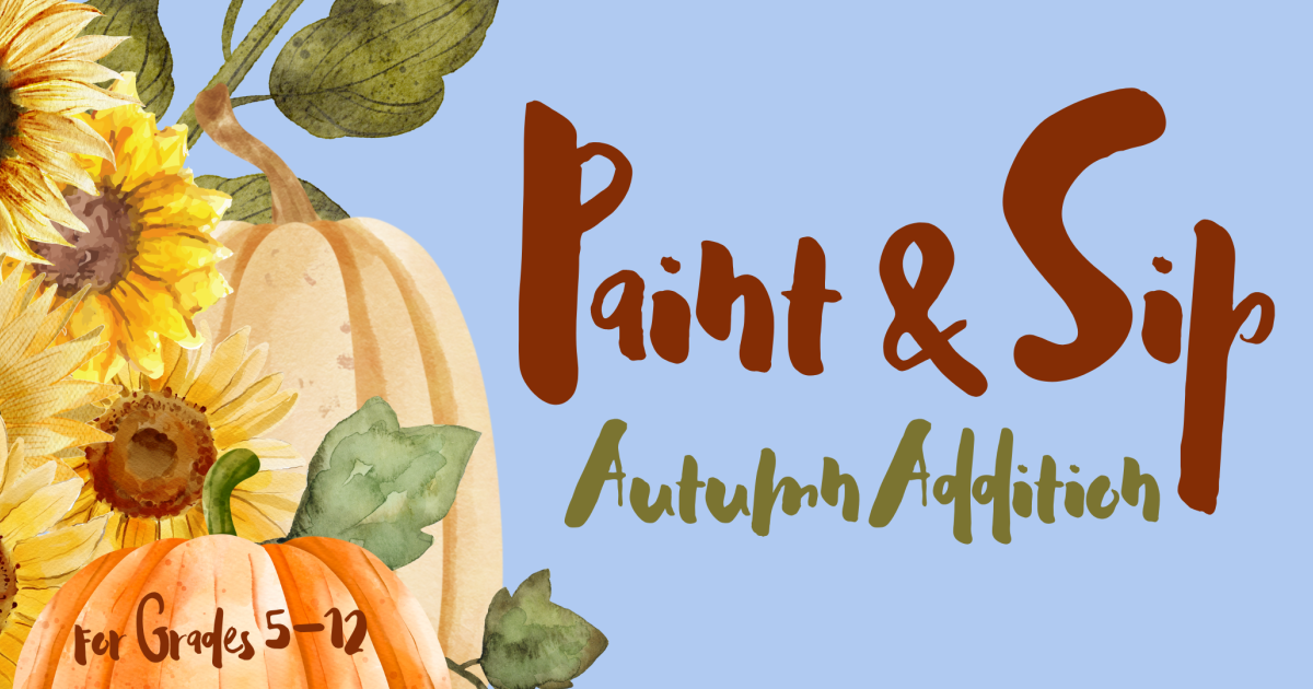 Register and join us in person to create an autumnal painting of sunflowers and pumpkins!