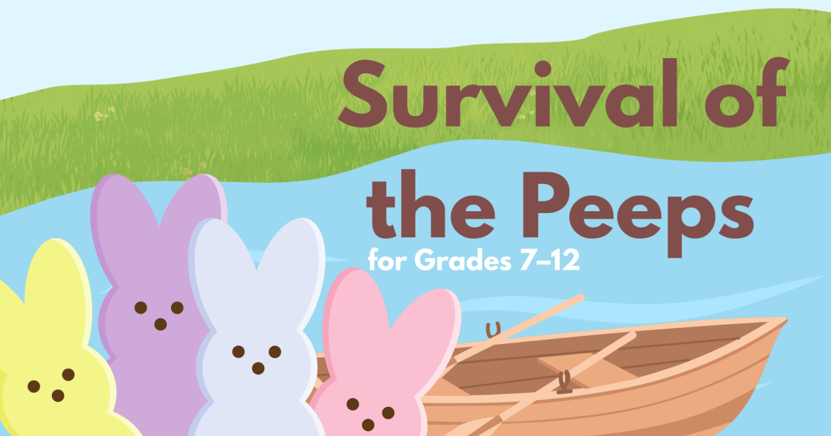 Register and join us in person for a Peep-tastic survival challenge. In your team of up to four people, you'll build boats and bridges to get your family of sugary Peeps safely over the river. Participants will vote for their favorite successful builds.