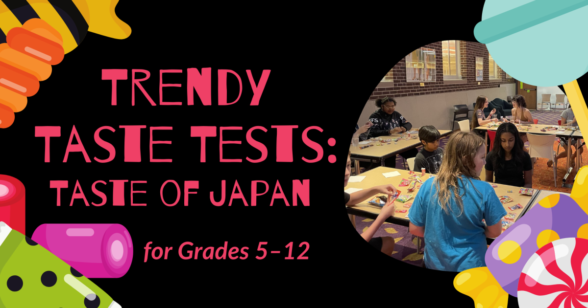 Register and taste-test the world! Join us in person for an evening of anime, manga, and Japanese candy!