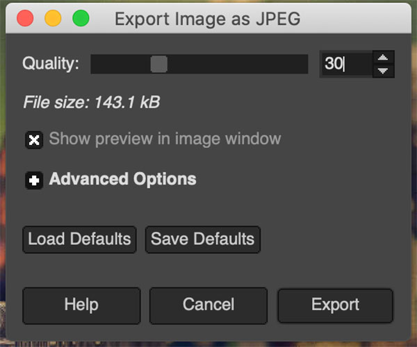 Under the new window “Export Image as (selected format),” check the box for "Show preview in image window." Other notes: