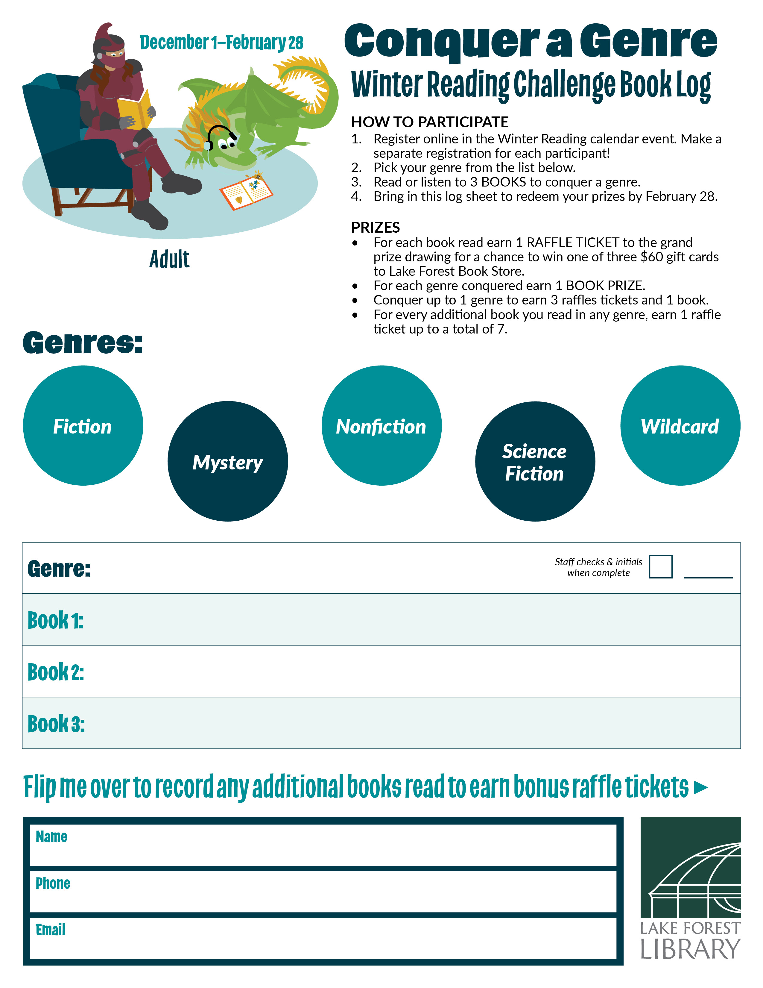 - Choose a genre from your age group's list and read the required number of books. If you choose to conquer additional genres, more power (and more prizes!) to you.
