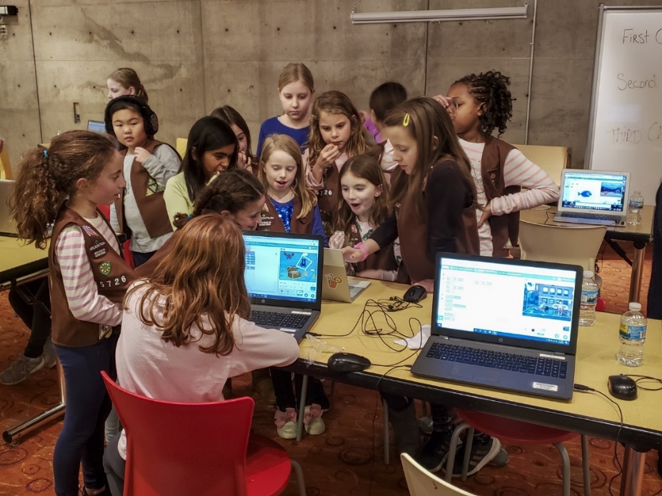 "Today our girl scout troop enjoyed 1½ hour coding session in the children’s library meeting room. The librarians were super helpful—Mrs. Kathy and Miss Michelle were knowledgeable and engaging. We earned an important badge and look forward to coming back soon! Thank you for having us!"