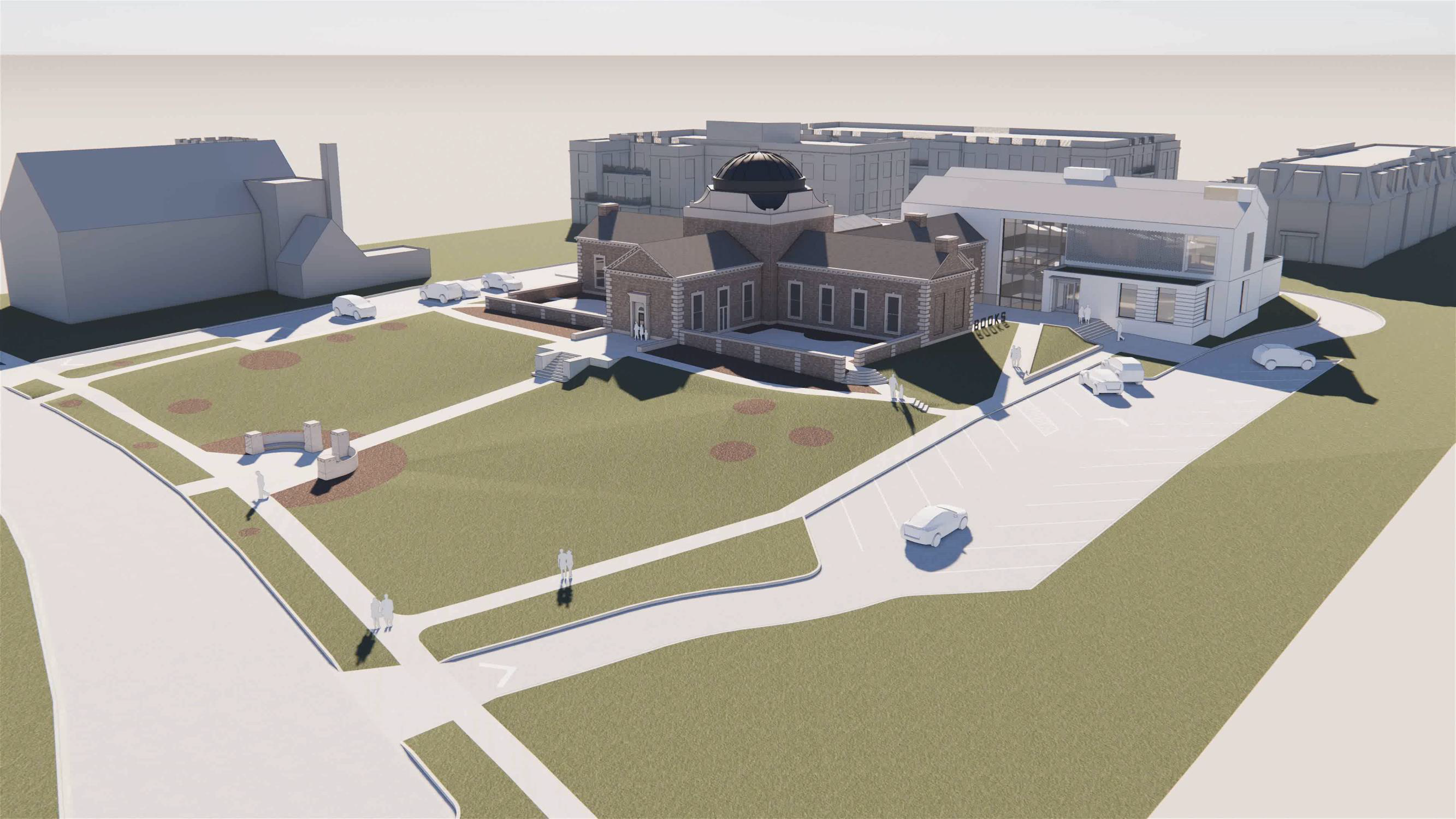 The new north wing expansion is designed to recede visually, ensuring that the historic structure is most prominent.