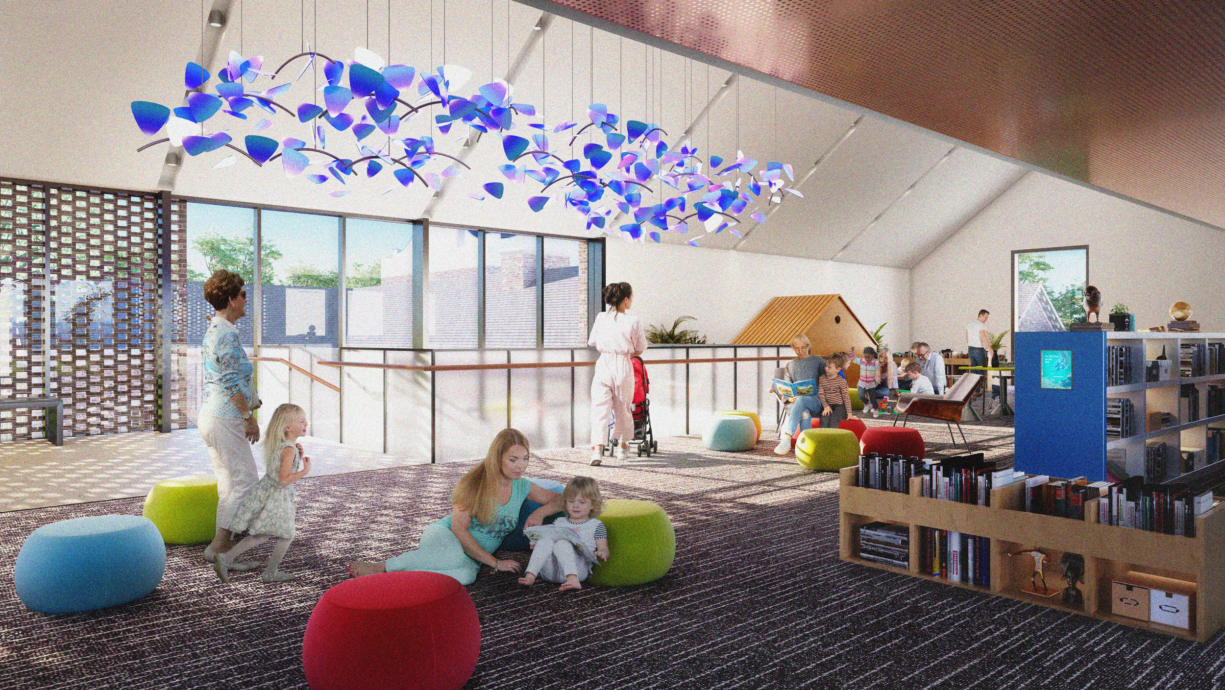 A new Children’s Library features natural light, improved sight lines for parents and caregivers, multifunctional space, and right‑sized shelving and furniture that enables children to browse the collection on their own.