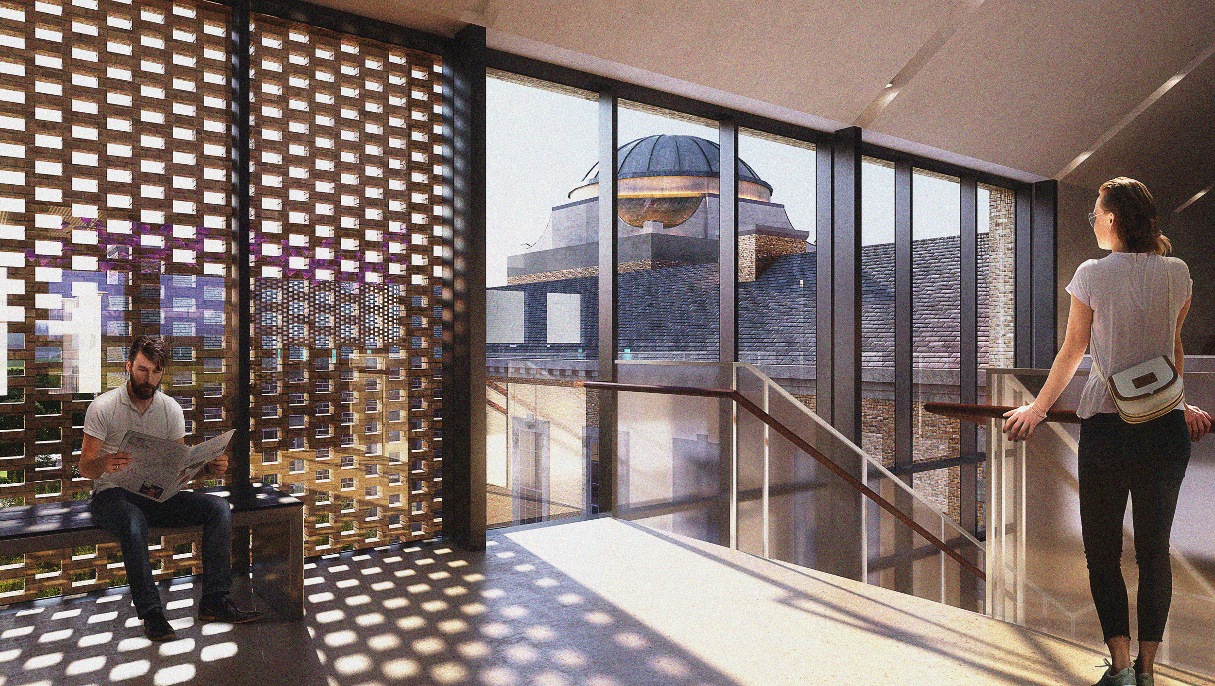 Preserving the past ... Shaping the future. The visual and spatial relationship between the historic and new structures ensure that the historic is revered and integral to one’s experience while visiting the Library.