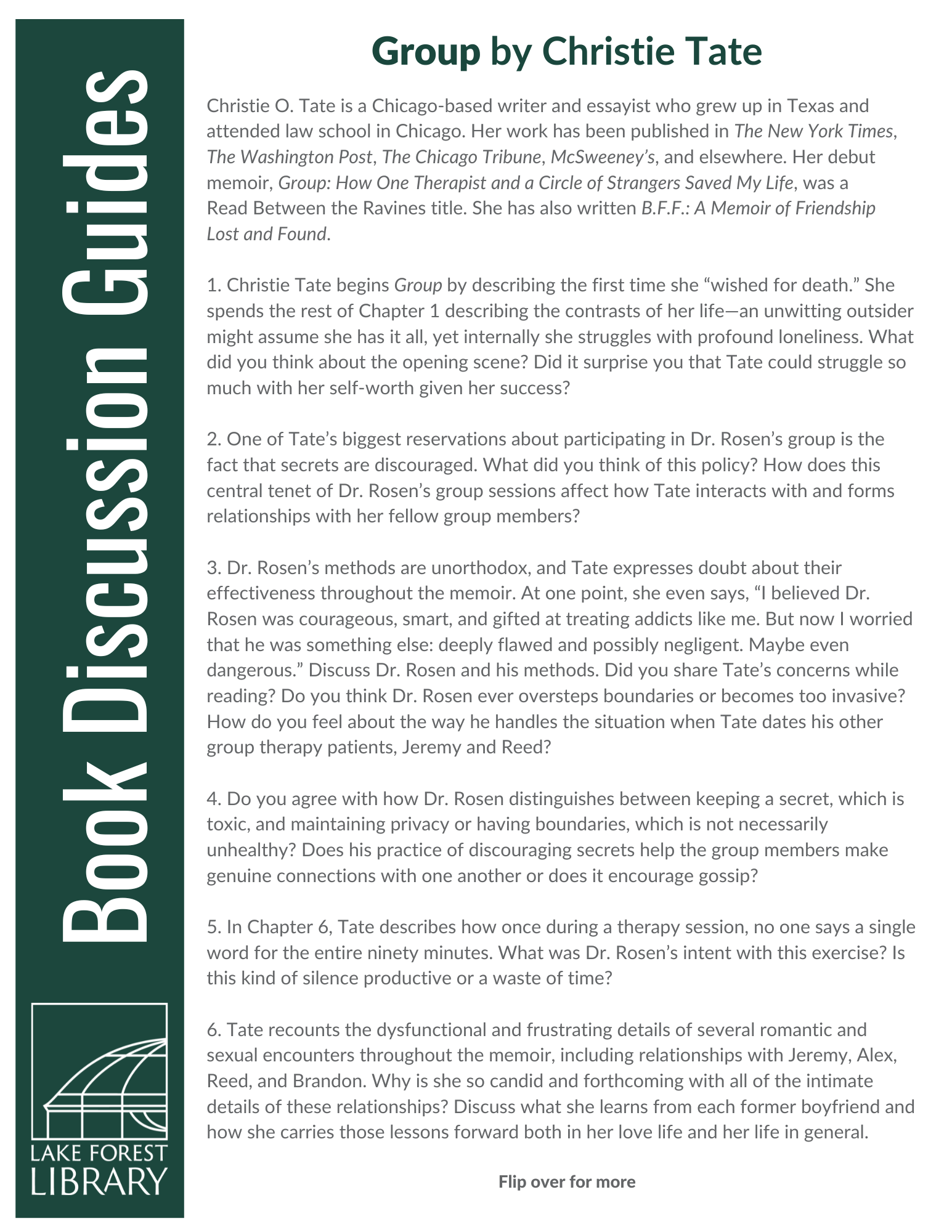 Go to the Lake Forest Library catalog to borrow "Group" by Christie Tate