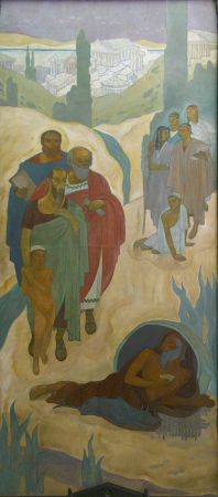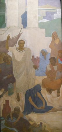 During his time in Chicago, he painted circus stage scenes for a plaster balcony in the Woman's Athletic Club ballroom which, according to Celia Hilliard, was replaced by a wrought iron balcony in the 1940s. He also painted murals at Alfred E. Hamill's Centaurs estate (located in Lake Forest and designed by David Adler), and Hamill later commissioned Remisoff to paint the murals at Lake Forest Library. Remisoff also continued to work as a fine artist, producing paintings on Russian themes for sale and exhibition. He had exhibitions at the Arts Club of Chicago (1925), the Laura Davidson Sears Academy of Fine Arts (ca. 1926), the Art Institute of Chicago (ca. 1926), and the Century of Progress Exhibition (1933).