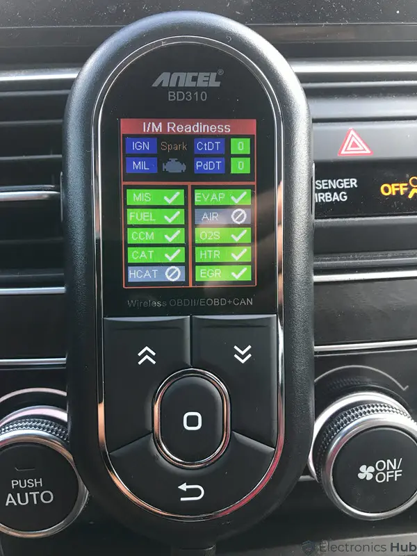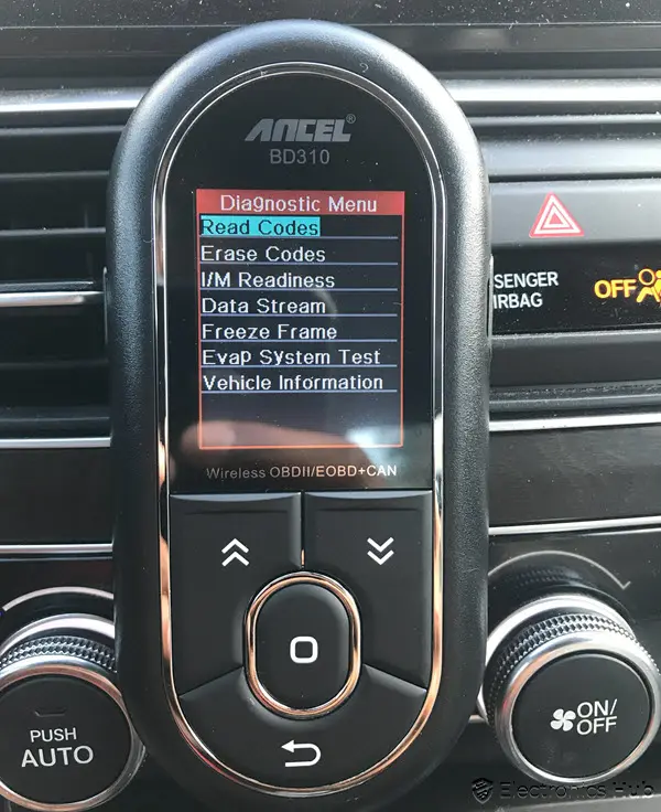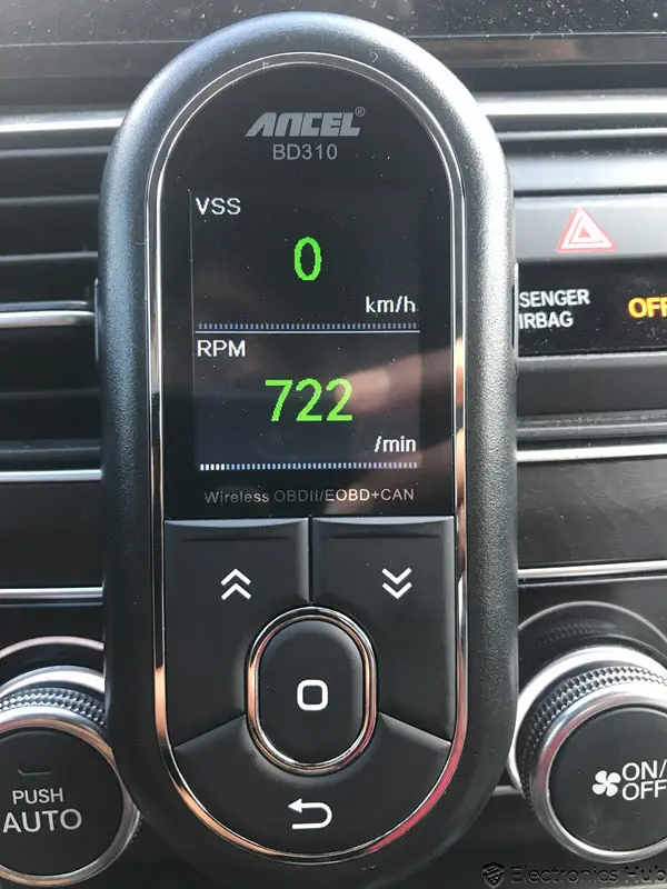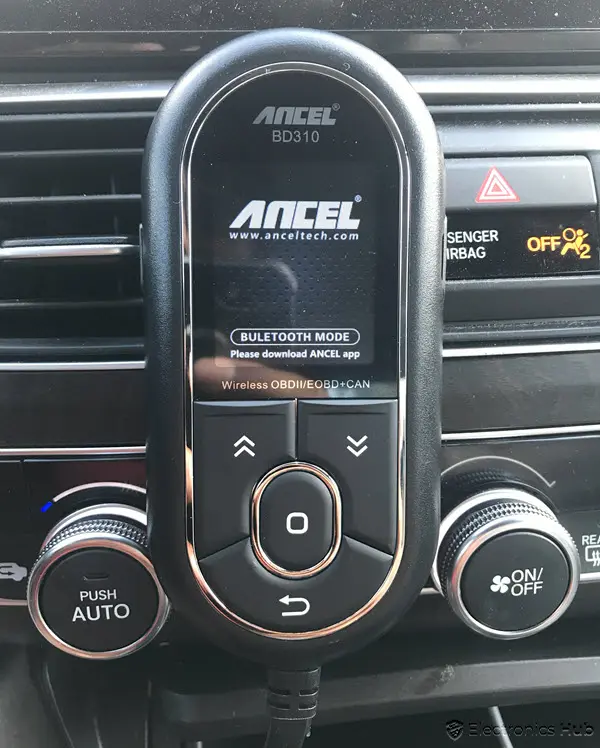 As mentioned, we used the ANCEL BD310 OBD2 Scanner with a 2018 Honda Accord. After plugging the connector to the OBD2 Port below the dashboard, the device powered up immediately.