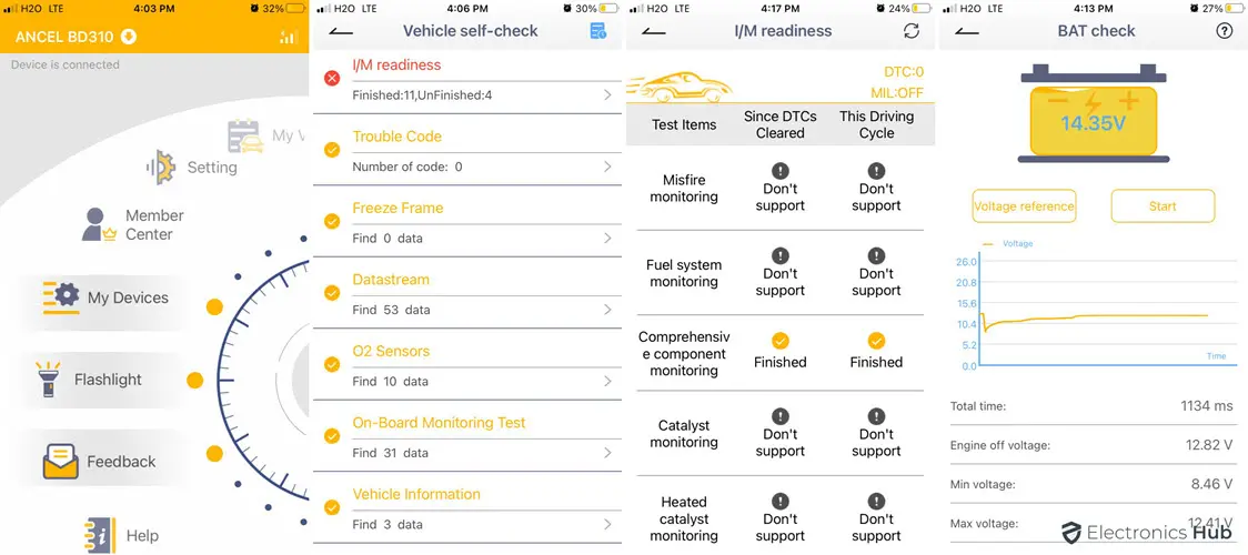 ANCEL BD310 OBD2 scanner offers a comprehensive trip analysis, including time, distance, start time, travel time, maximum speed, maximum speed RPM, average speed, highest and lowest coolant temperature, number of over speeds, and quick braking incidents. You can record, save, print, and share trip data for analysis or discussion with your mechanic. The I/M Readiness function provides a snapshot of the exhaust system’s operations on OBDII/EOBD vehicles. It allows you to check the readiness status of various monitors and components in your vehicle’s emission control system.